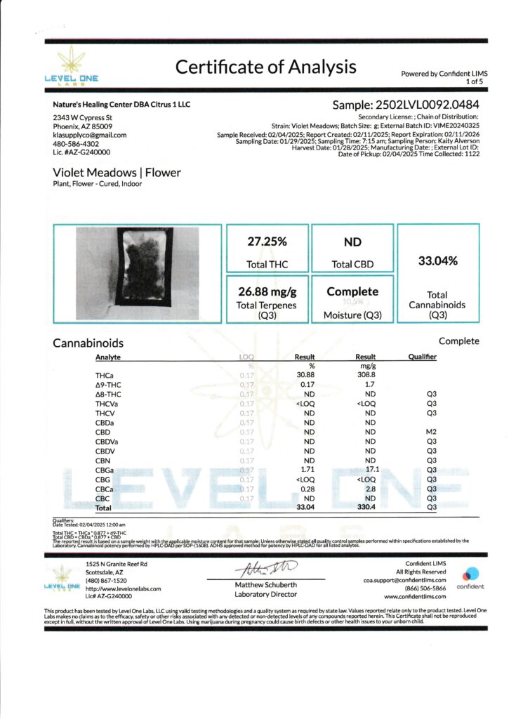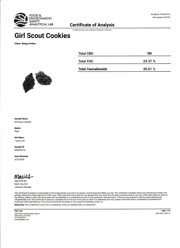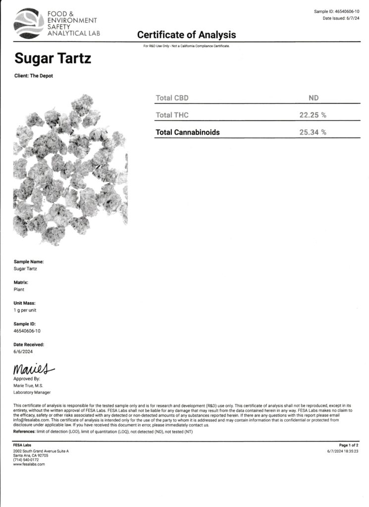 Here you’ll find Certificates of Analysis (COAs) for our hemp-derived flower, including strain-specific results for Delta-9 compliant hemp flower, THCA flower, CBD flower, and terpene-rich craft cultivars.
