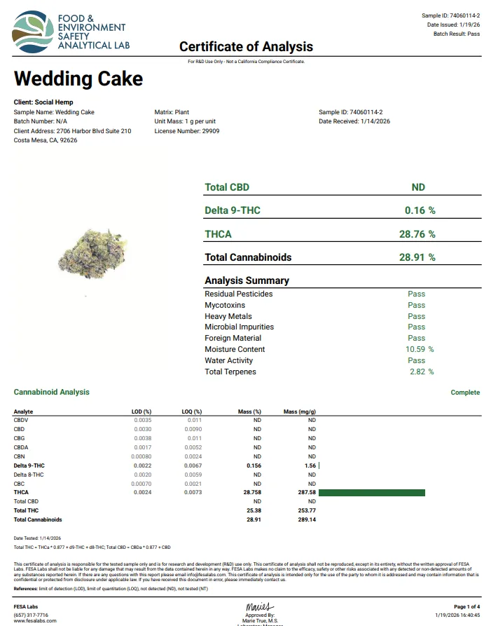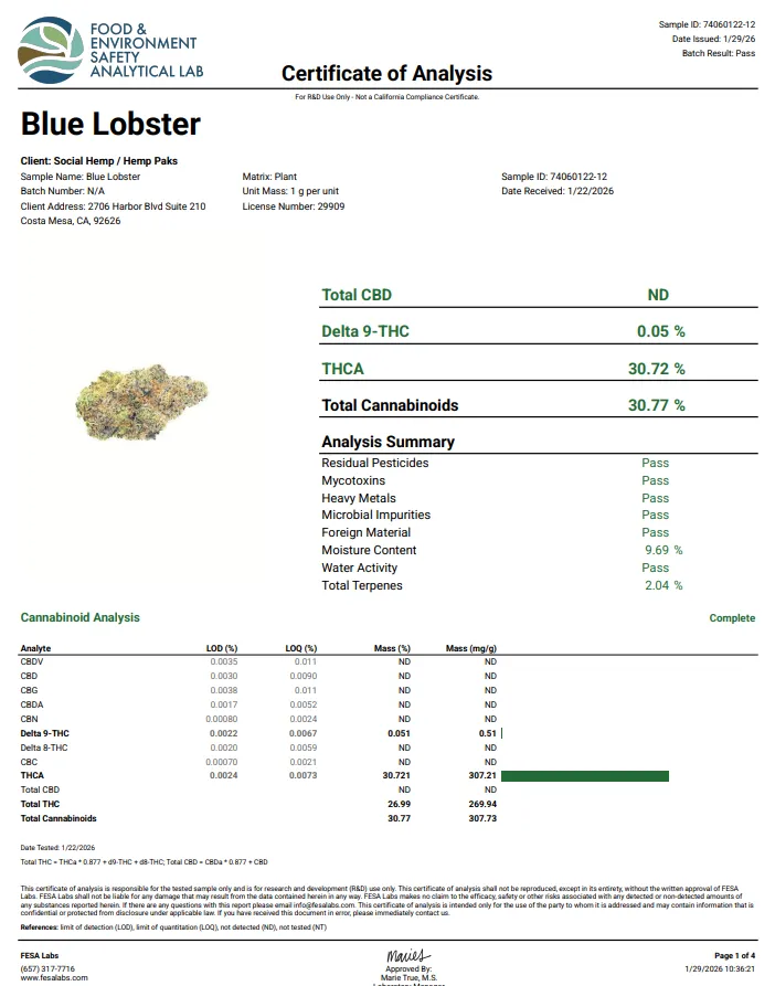 Every product we carry at The Hemptender is backed by third-party lab testing (Certificates of Analysis/COAs) to verify cannabinoid potency, purity, and compliance with the 2018 Farm Bill (<0.3% Delta-9 THC by dry weight).